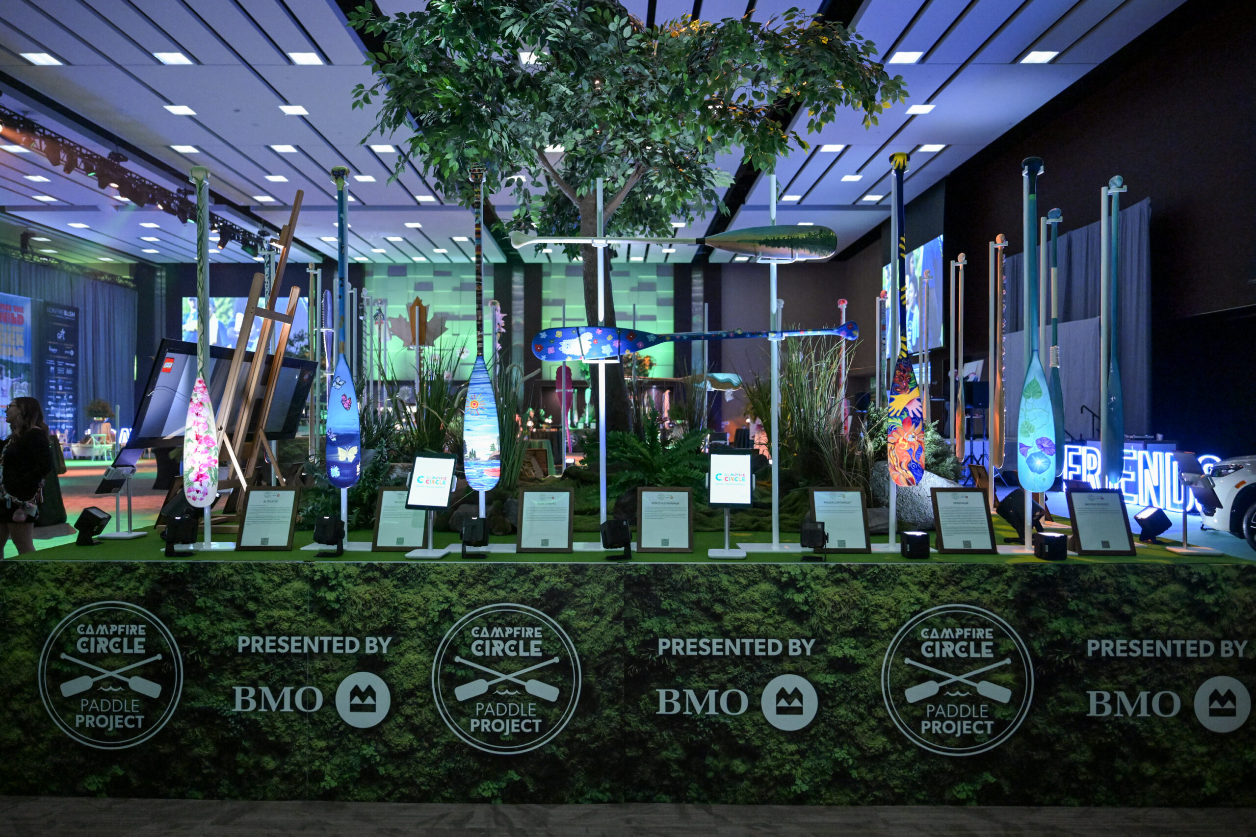 Throughout the night, generosity filled the air. Our live auction, generously supported by Air Canada Foundation and hosted by Christie’s Brett Sherlock, offered luxury experiences and adventures. Guests bid on one-of-a-kind canoe paddles through the Paddle Project presented by BMO, featuring artwork by Canadian icons, such as the late Gordon Lightfoot, Mike Myers, Sarah McLachlan, and Seth Rogen and Evan Goldberg. Artist Rob Prior even created a live painting with the help of our campers, blending creativity and community.